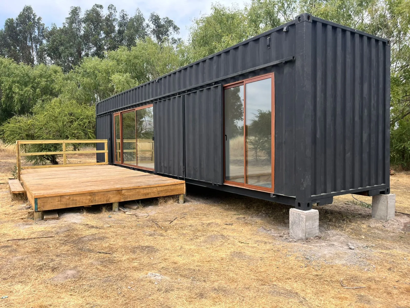 El resultado: una vivienda sólida, transportable y adaptable, con una estética industrial contemporánea y tiempos de ejecución significativamente menores frente a la construcción tradicional.